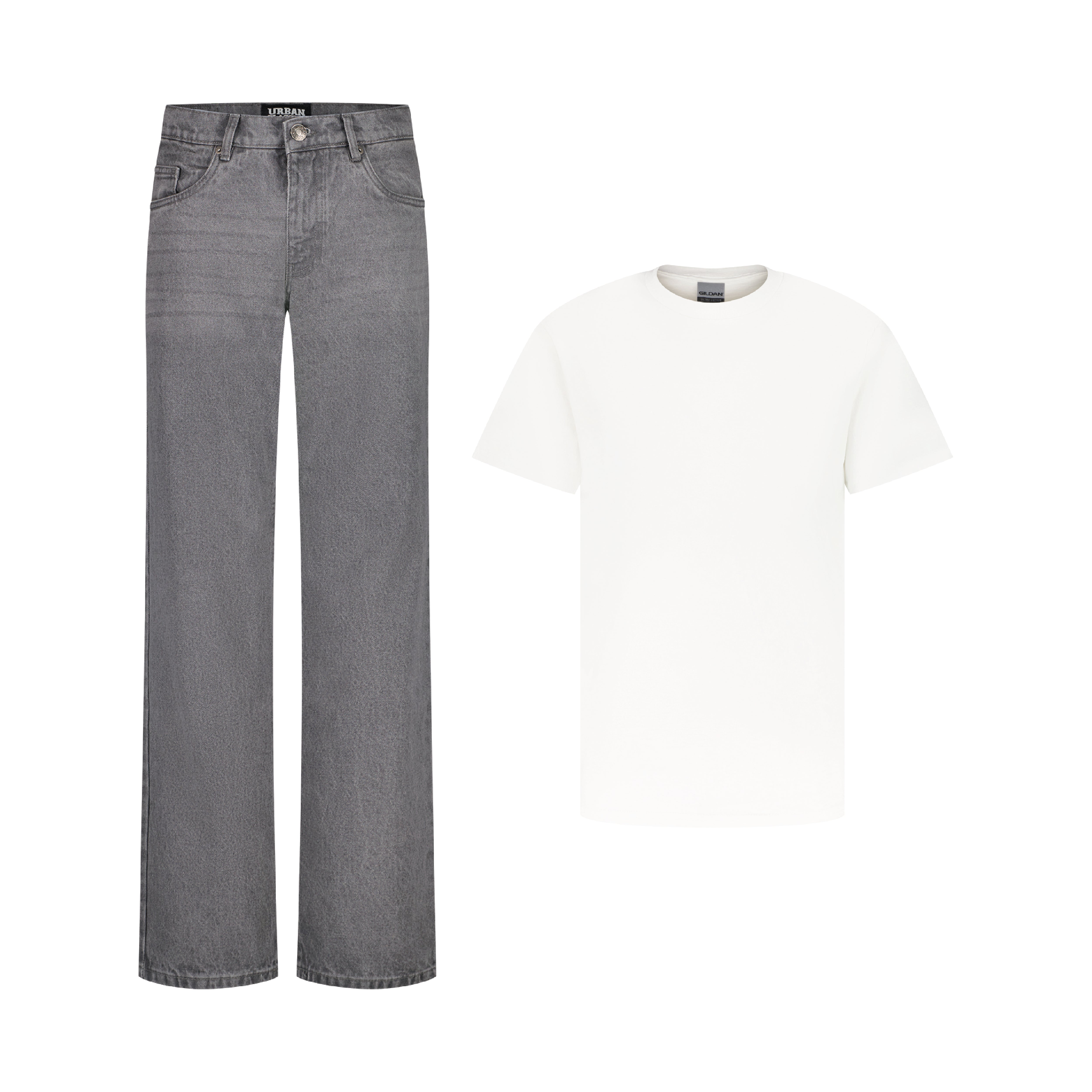 SET REGULAR JEANS HOSE GRAU + T-SHIRT CLASSIC