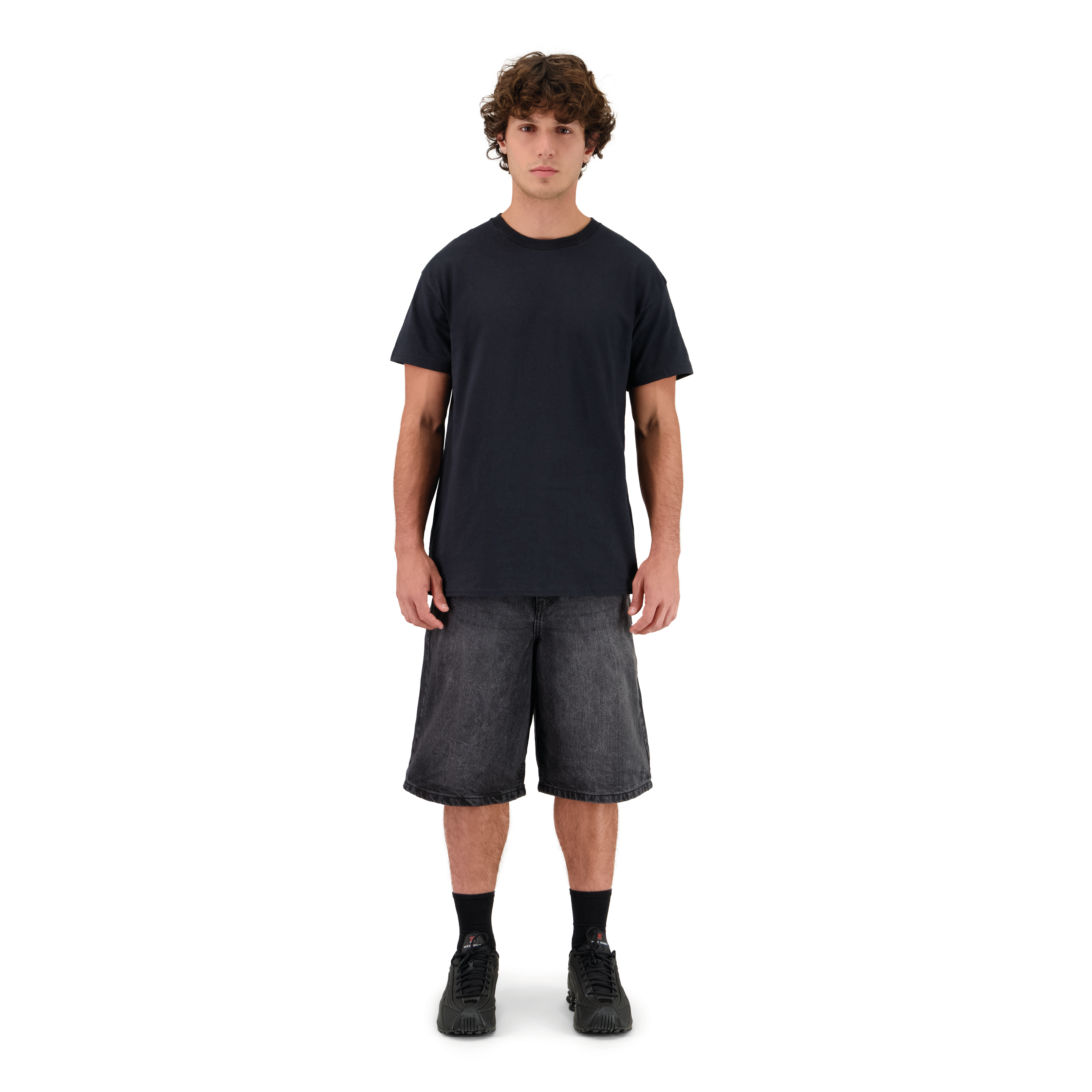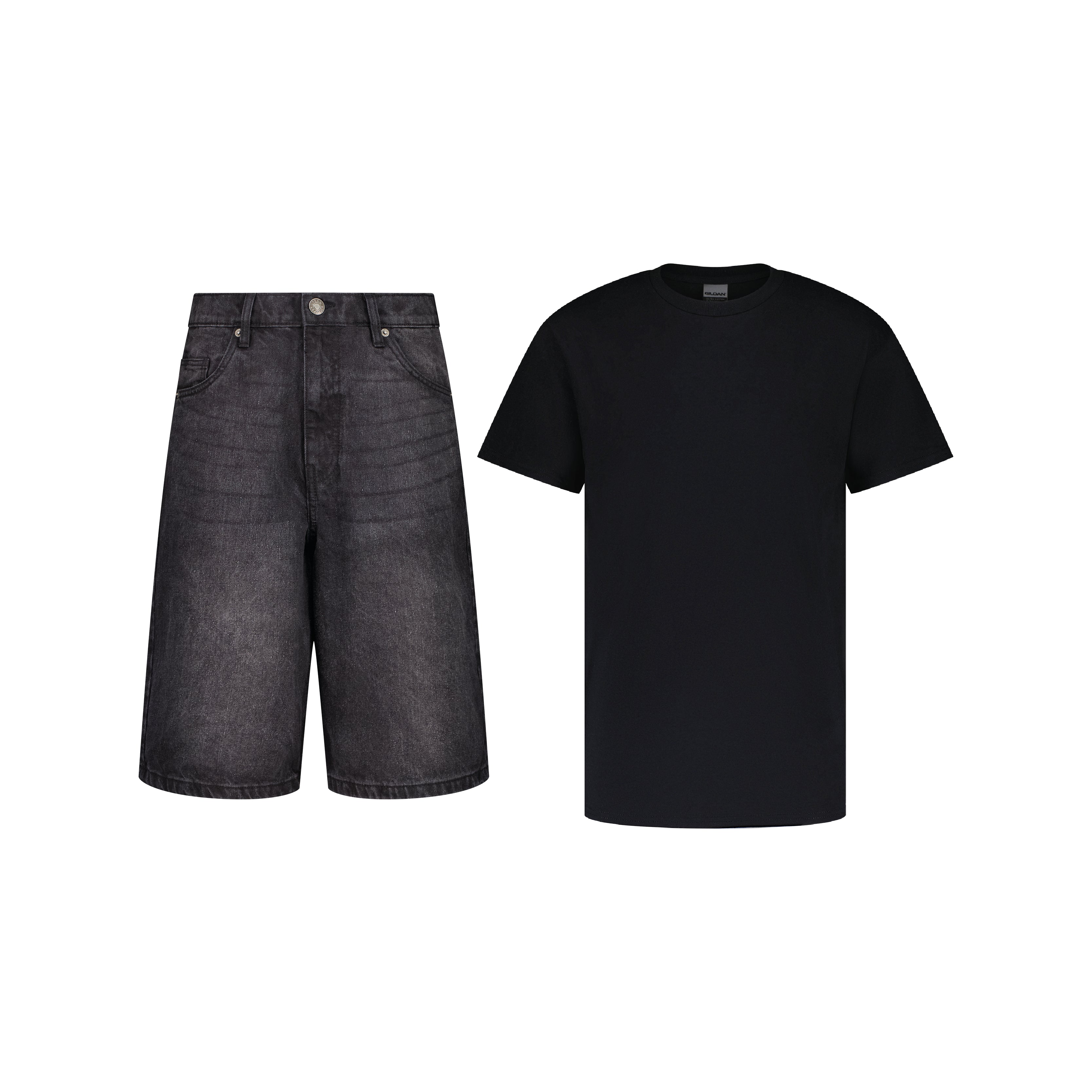SET BAGGY JEANS SHORTS SCHWARZ + T-SHIRT CLASSIC
