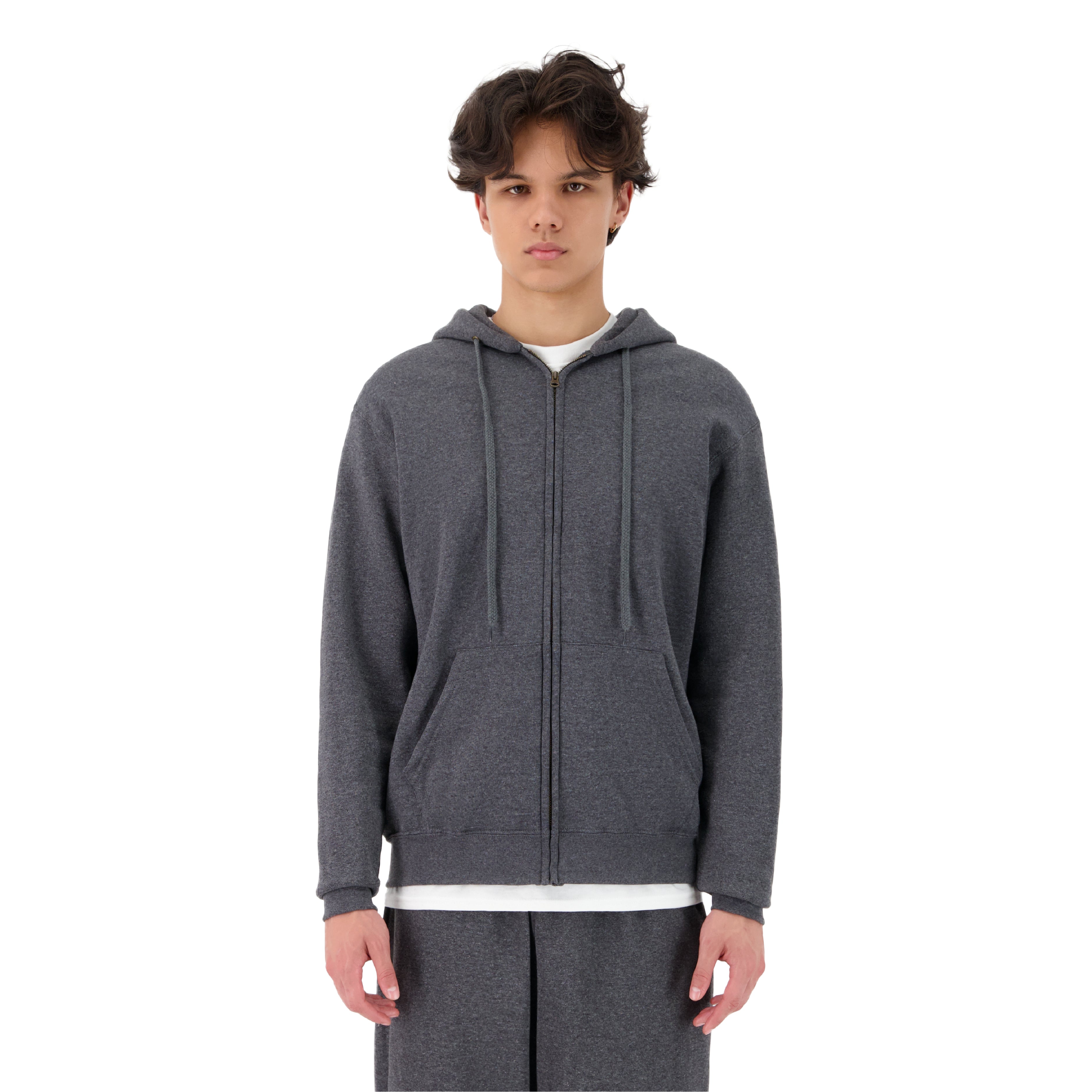 DAS MODEL IST 188CM GROSS. ER TRÄGT DEN ZIP-UP HOODIE IN GRÖSSE L.