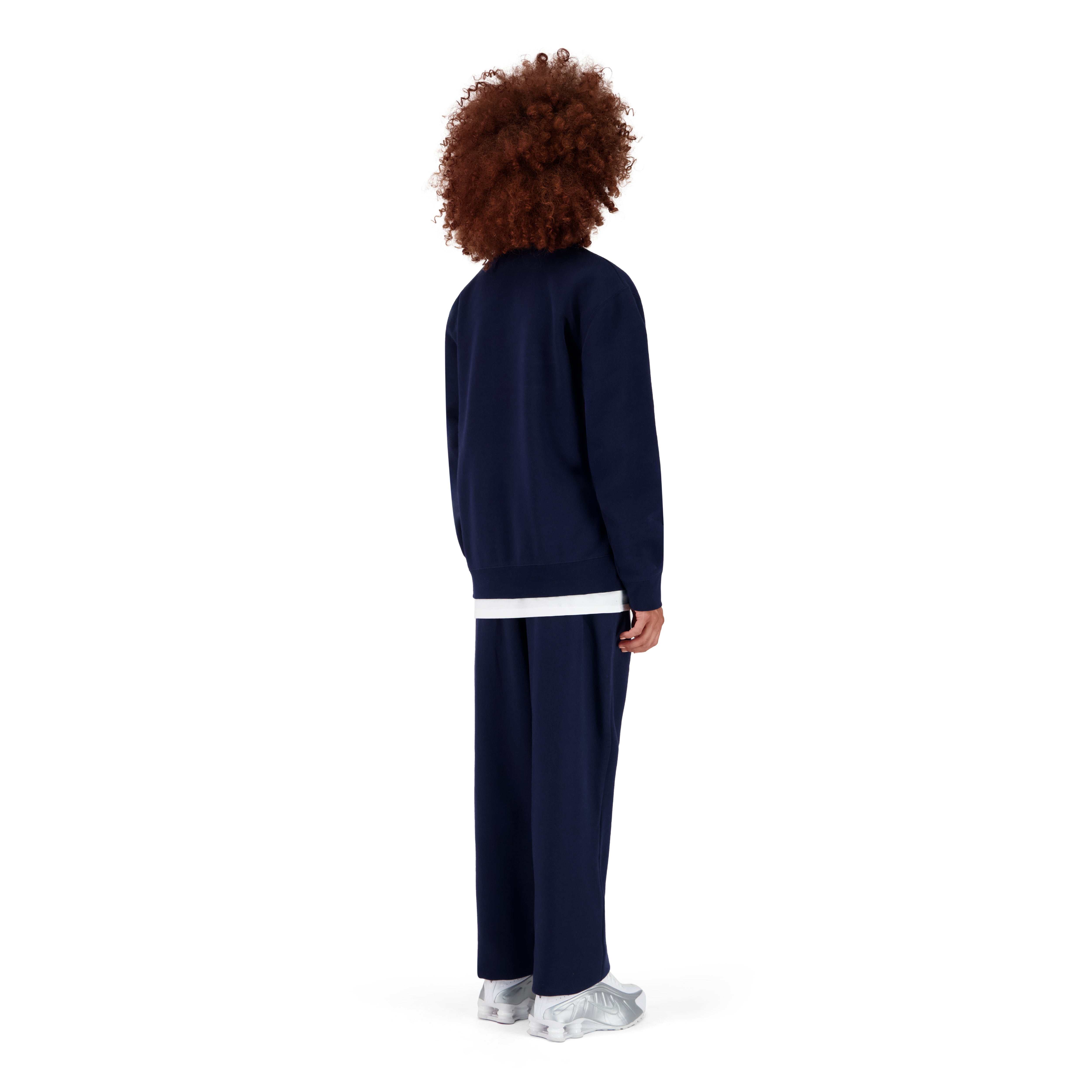 THE MODEL IS 180CM TALL, SHE IS WEARING THE CREWNECK IN SIZE M AND THE JOGGING PANTS IN SIZE L FOR AN OVERSIZED EFFECT.