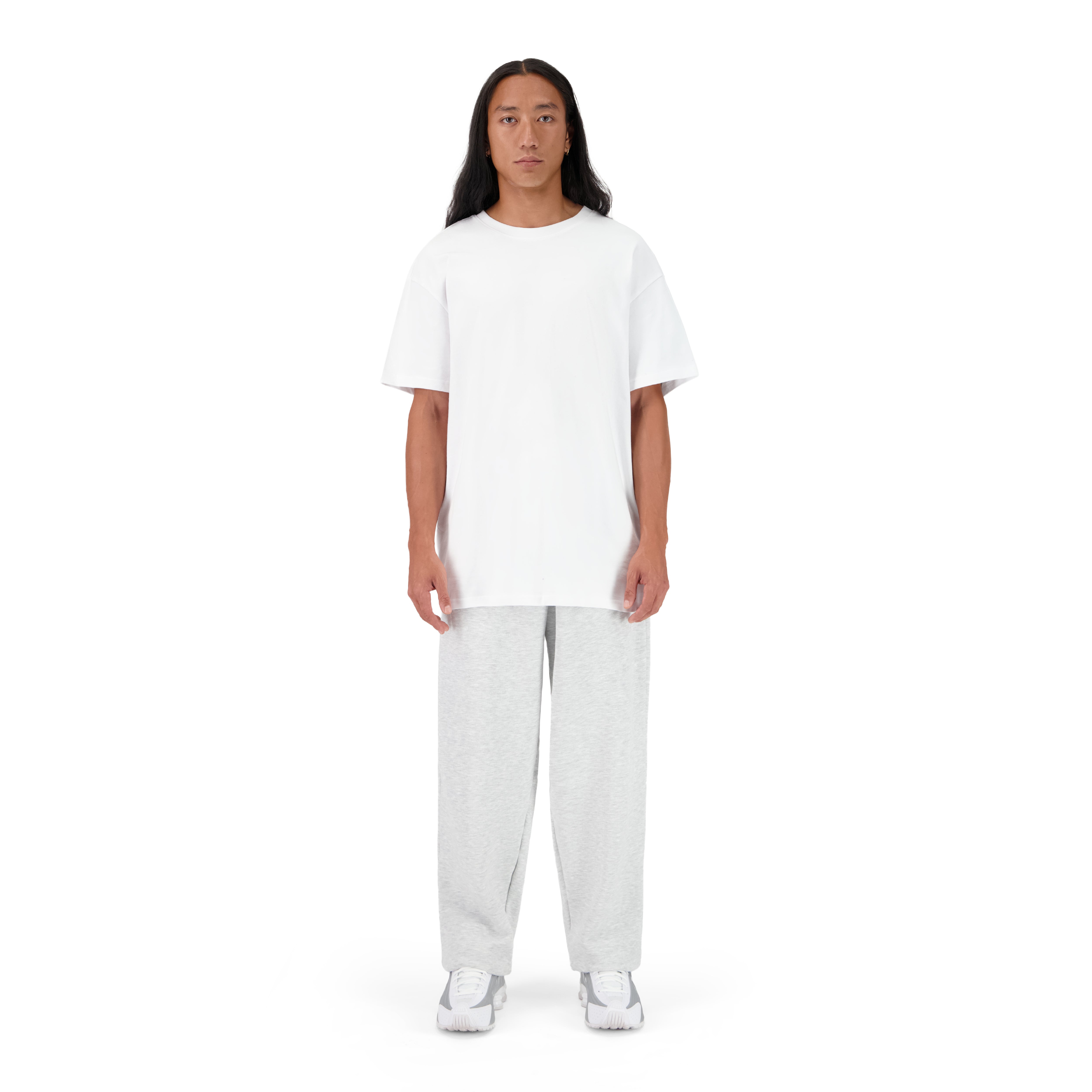 THE MODEL IS 182CM TALL, HE IS WEARING THE T-SHIRT IN SIZE L AND THE JOGGING PANTS IN SIZE XL FOR AN OVERSIZED EFFECT.