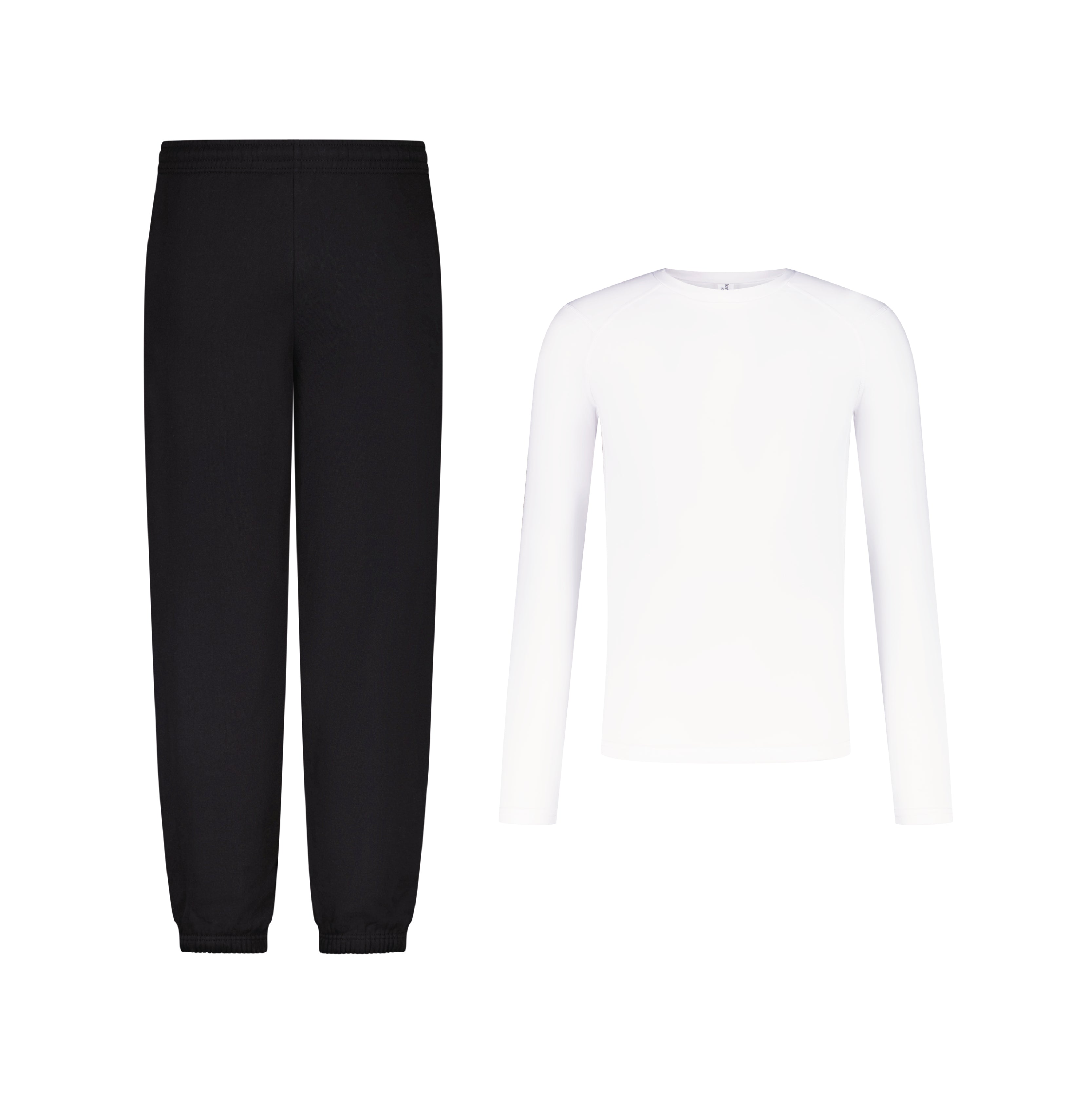 THE PREMIUM JOGGING PANTS FIT REGULARLY WHILE THE SPORT COMPRESSION LONGSLEEVES ARE FITTED, THEY RUN SMALL!