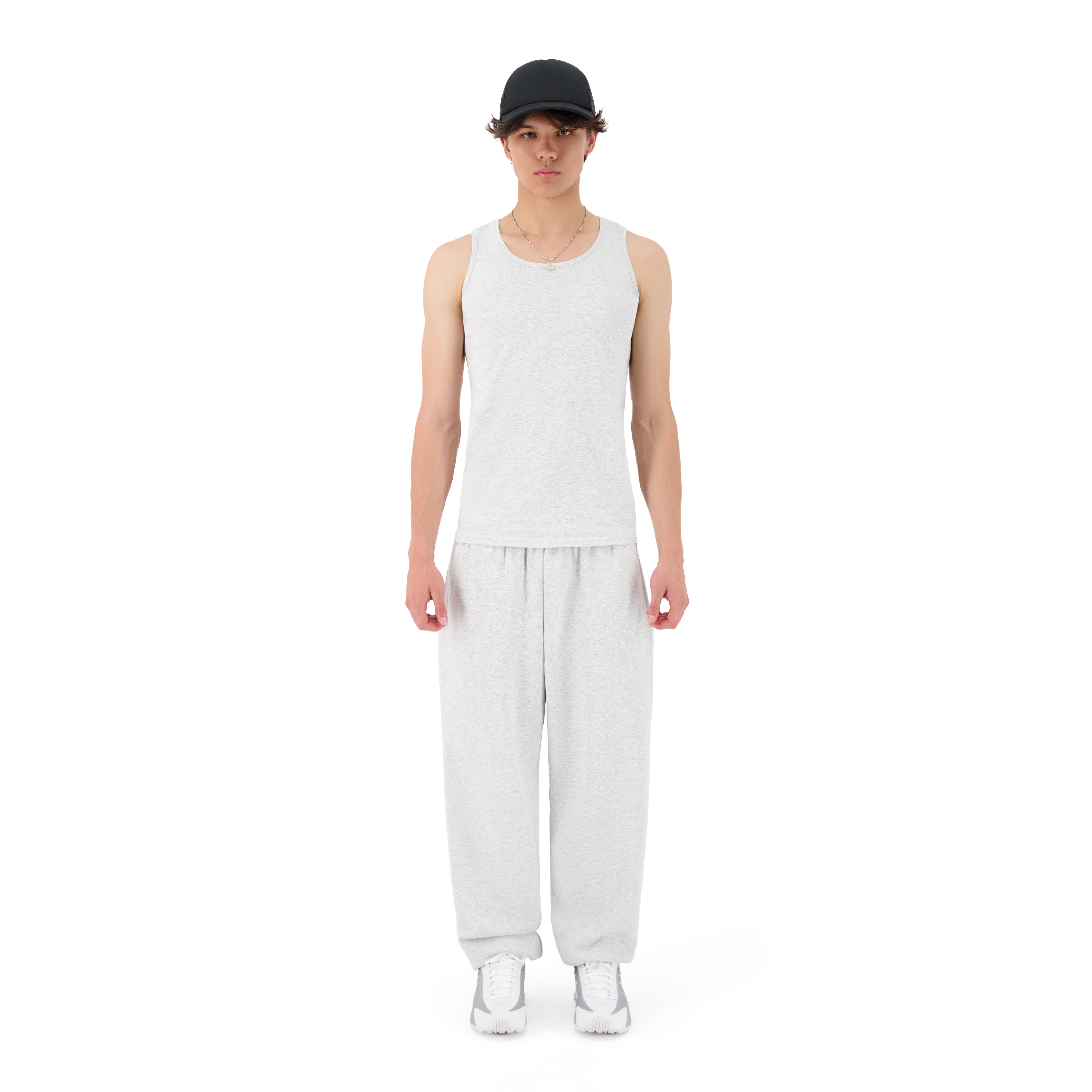 THE MODEL IS 185CM TALL, HE IS WEARING THE TANK TOP IN SIZE M.