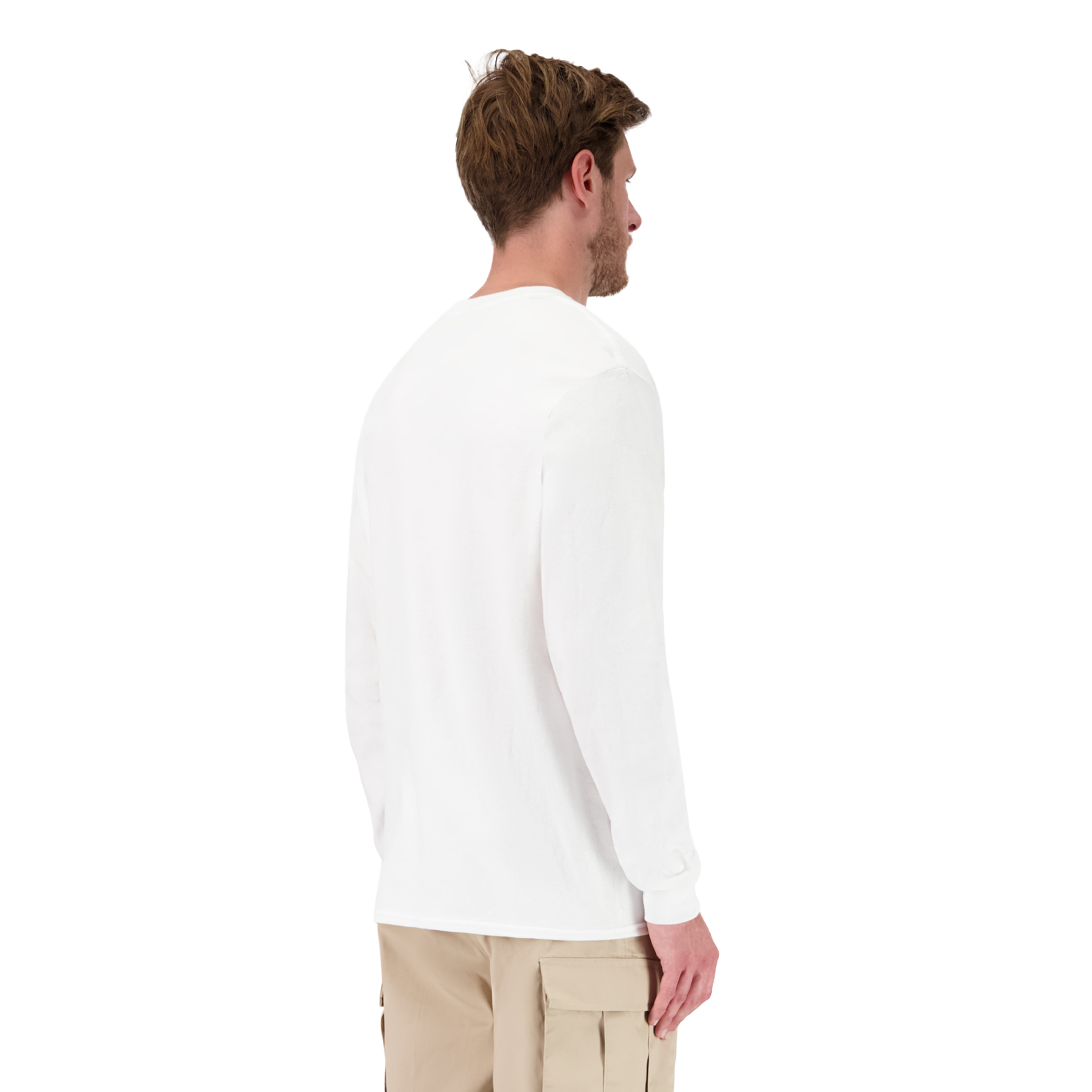 THE MODEL WITH THE HEATHER GREY LONGSLEEVES IS 185CM TALL AND IS WEARING THE LONGSLEEVES IN SIZE L.