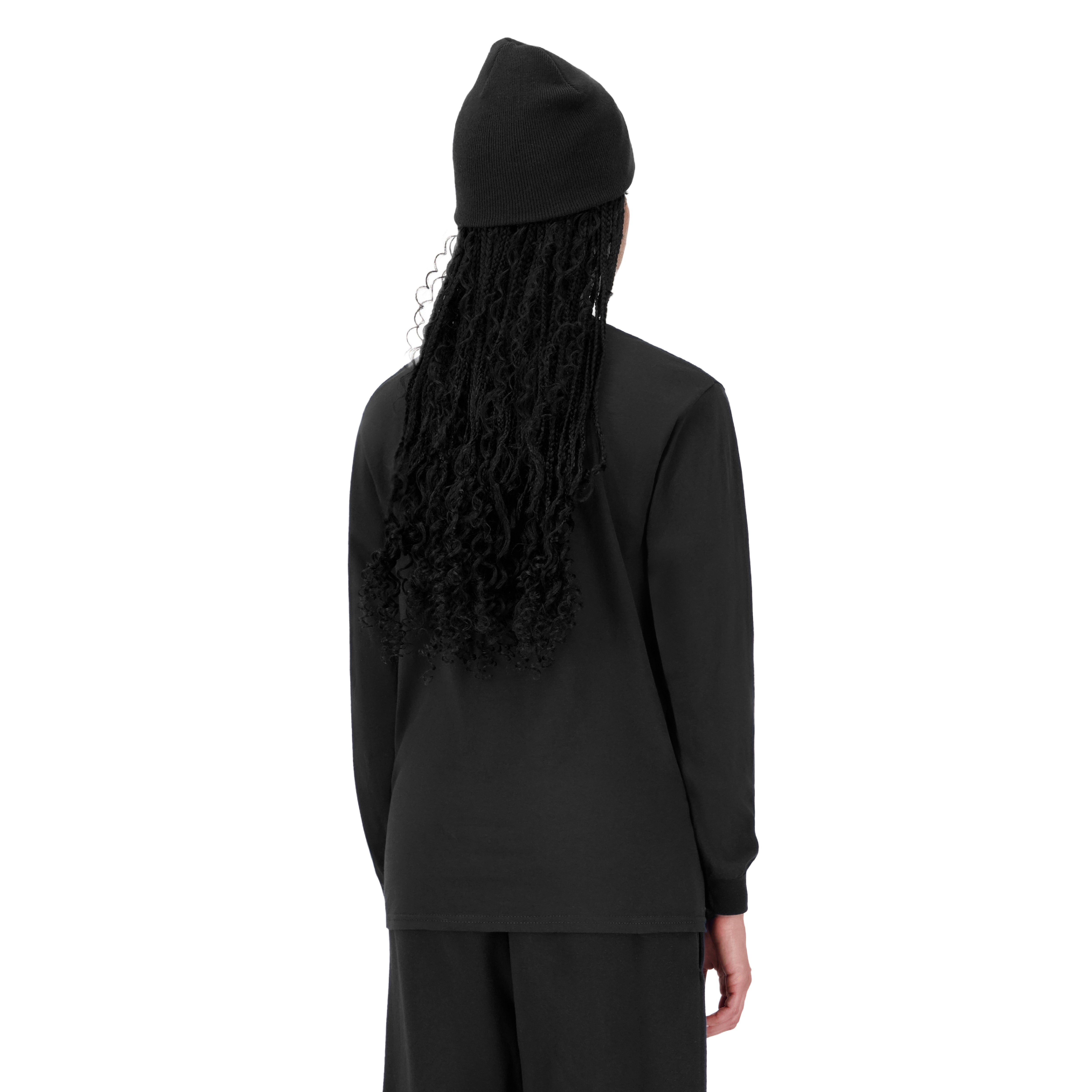 LA MANNEQUIN MESURE 175CM, ELLE PORTE LE LONGSLEEVES EN TAILLE M.