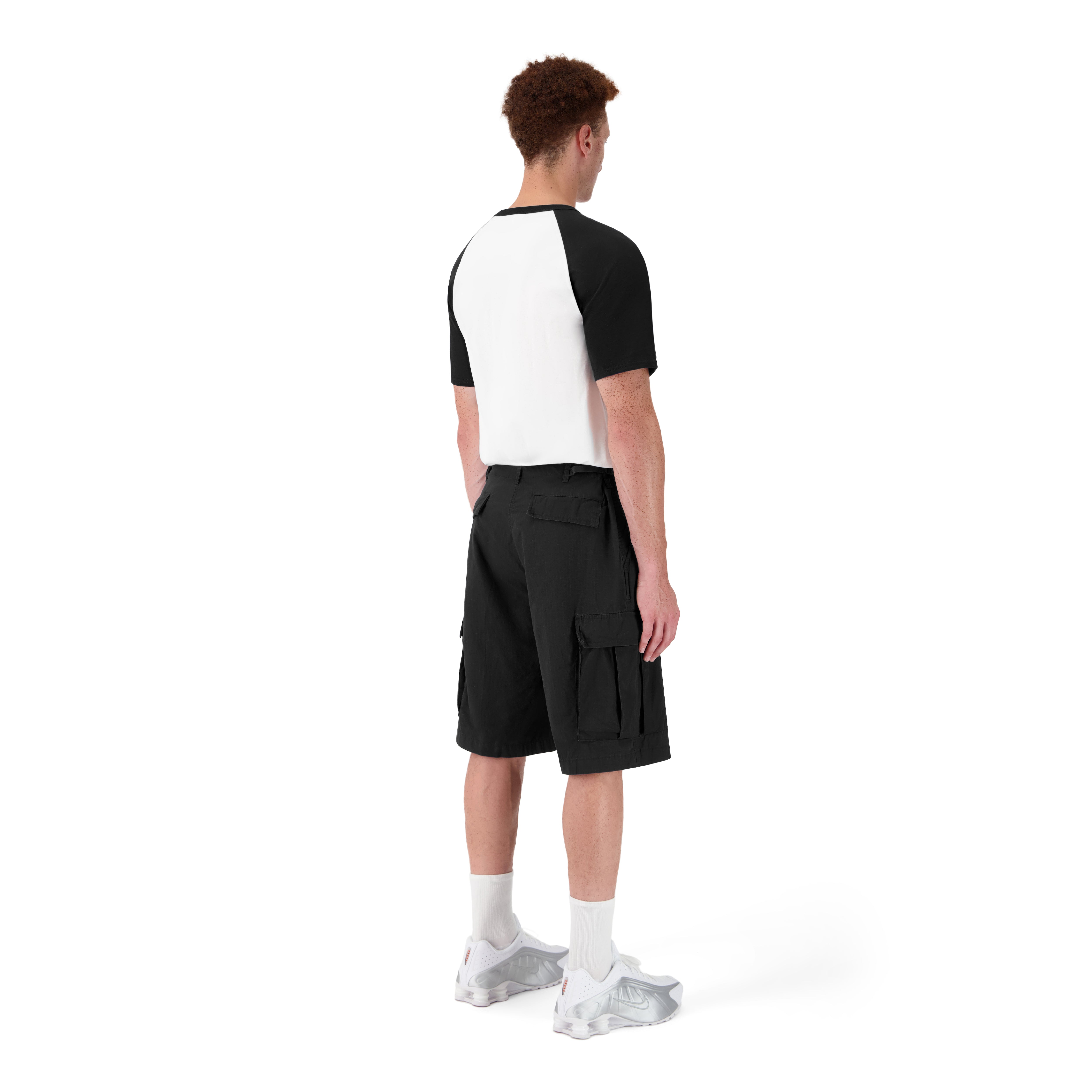 LE MANNEQUIN MESURE 188CM, IL PORTE LE SHORT EN TAILLE XL POUR UN EFFET OVERSIZE.