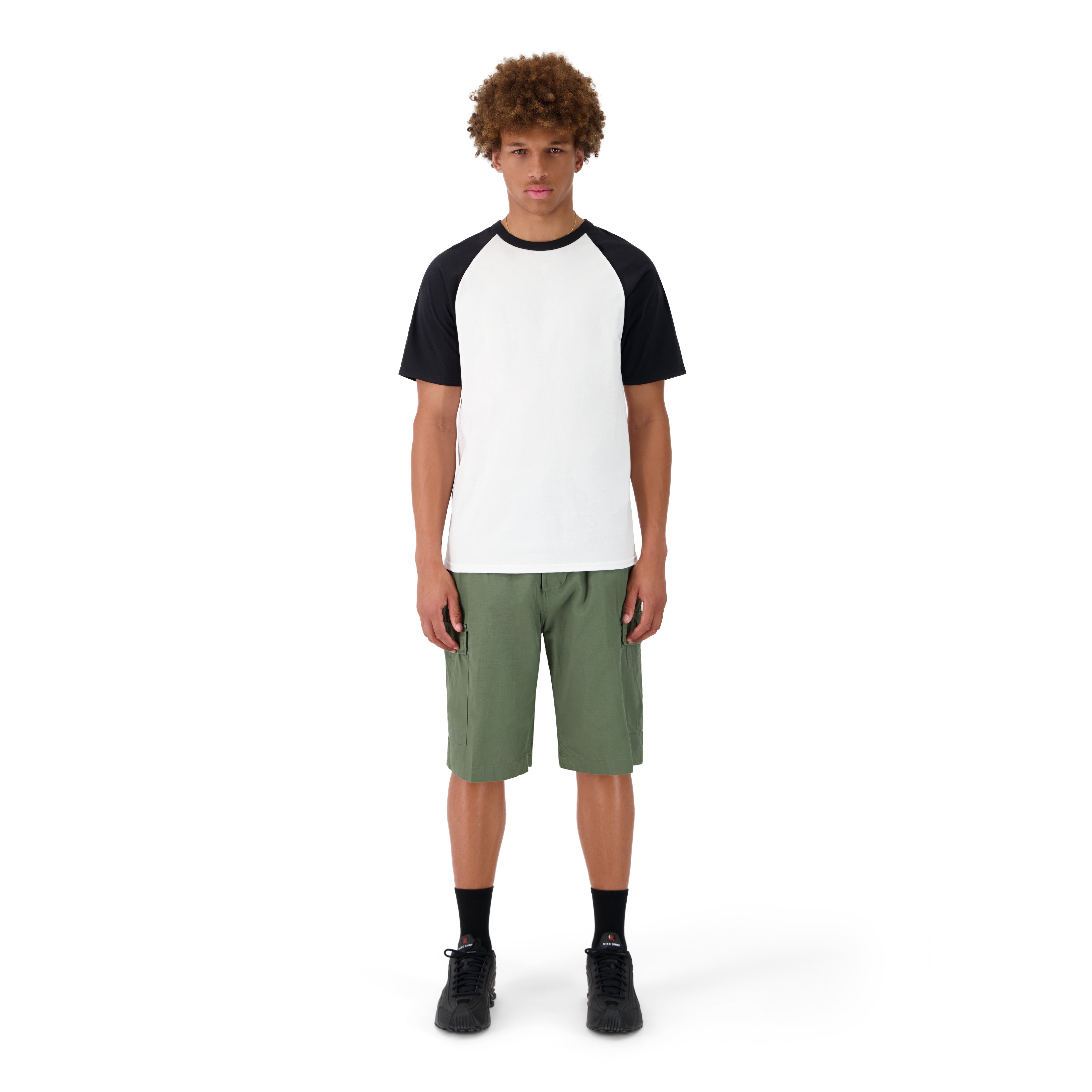 LE MANNEQUIN MESURE 185CM, IL PORTE LE SHORT EN TAILLE XL POUR UN EFFET OVERSIZE.